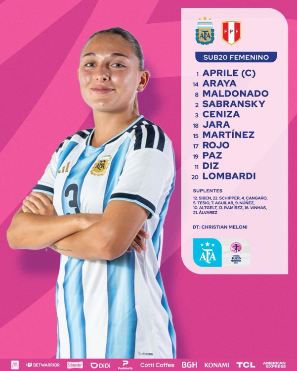 Argentina derrotó a Perú por la tercera fecha del certamen, en su segundo compromiso, ya que tuvo libre la primera jornada. Puntaje ideal, ya que también triunfó en su debut en el Sudamericano Sub 20, ante Ecuador.
